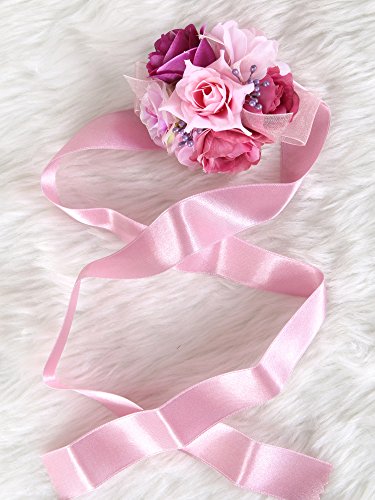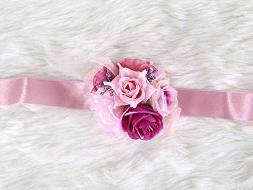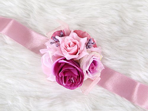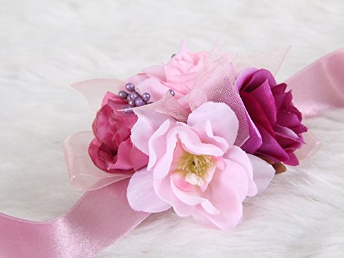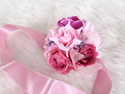 Pretty bridesmaid wrist Corsage Rose Flower Wedding Bridal (Mix Berry)