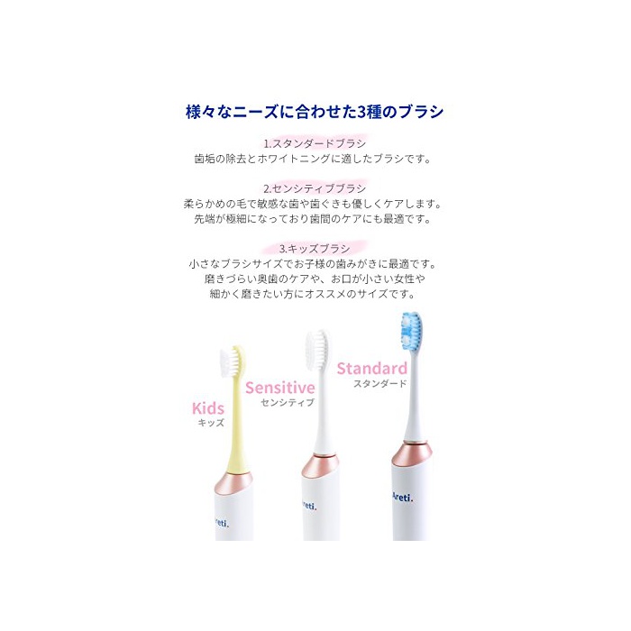 스탠다드 브러시(2개)sensitive 브러시(1개)키즈 브러시(1개)가 세트.캡 커버 첨부 와.스탠드로 두는 것만(만큼)의 간단 충전