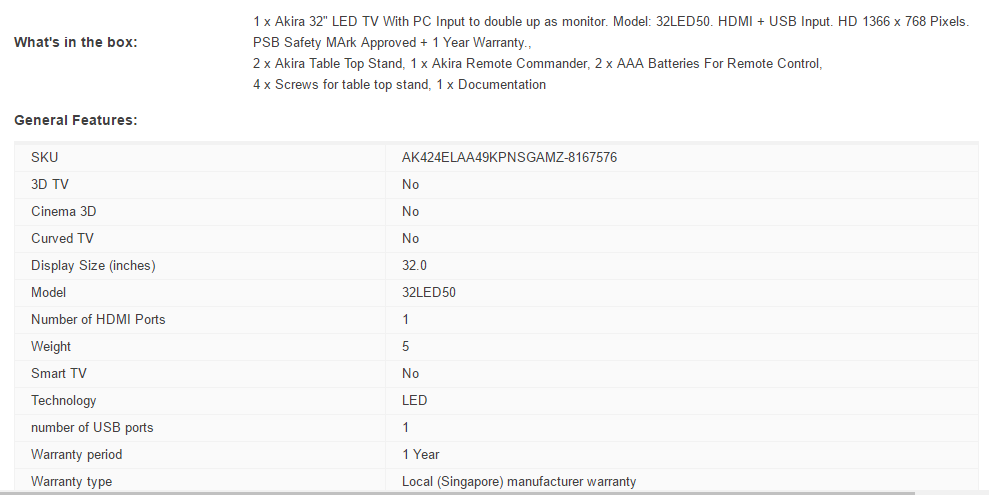 The main image is for illustration purposes only. The actual image of the Akira 32LED50 is as below. You willu0026nbsp;NOT get the Akira TV with its red logo. It will be a white logo. To see manufacturer's website on this model,u0026nbsp;
