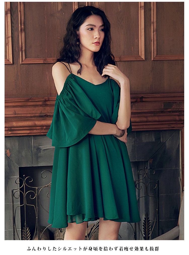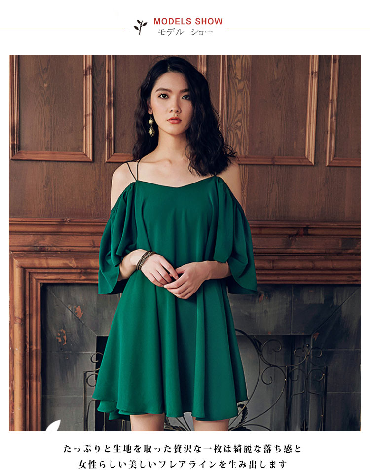 | 贅沢ほどいっぱい生地を取ったフレアワンピースたっぷりと生地を取った贅沢な一枚は綺麗な落ち感と女性らしい美しいフレアラインを生み出しますふんわりしたシルエットが身頃を拾わず着痩せ効果も抜群空気をはらみ揺らめく素材なので、動く度に揺れるエレガントデザイン | |
