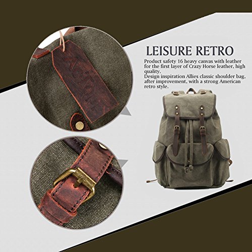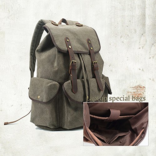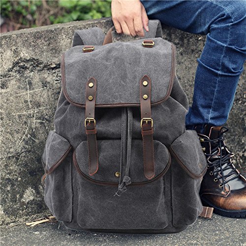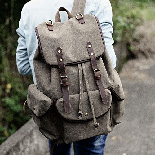 -. Feature : Der schöne Damen & Herren Rucksäcke sind aus hochwertigem Leinwand und Kuh-Leder verarbeitet, Vintage-Stil Leinwand Rucksack mit verstellbaren und langlebig Schulterriemen zum Tragen bequem. / GRÖßE - 46cm x 33cm x 18cm 28 Liter Eine solche große Kapazität Rucksack / Wandern Daypacks / Rucksack mit vielen Taschen kann bieten mehr Platz für kleine Dinge wie Handys, Schlüssel. / Es gibt viele Taschen: 1 x Fronttasche mit Druckknopfverschluss; 2 x seitliche Druckknopfverschlusstaschen; 1 x Innen Handy Taschen; 1 x Innen-Credential Tasche; 1 x Tablette / 15 "Laptop gepolsterten Fach. / Verstellbare Schultergurt für perfekten Tragekomfort. Ideal für den täglichen Gebrauch, Uni, Outdoor, Sport, Reise, Camping, Ausflüge, Exkursionen, Radfahren. / Ein Rucksack für alles: Der Allrounder ist durch seine neutrale Farbe in Canvas für Damen Herren, Mädchen und Männer ideal geeignet und kann dank seiner kompakten Größe als Schultasche, Wanderrucksack etc. genutzt werden!
