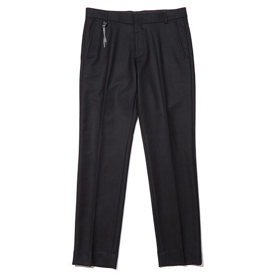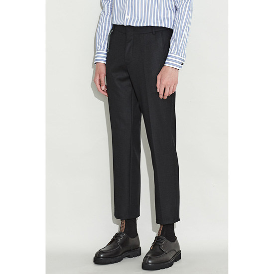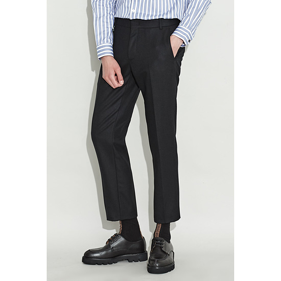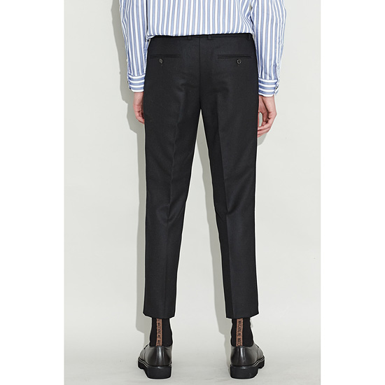 - 깔끔한 다크 브라운 컬러의 남성 시가렛 울 팬츠.