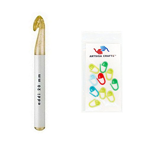 - Bundle includes 1 addi Plastic 6-inch (15cm) Crochet Hook Size US S (20.00 mm) with 10 Artsiga Crafts Stitch Markers