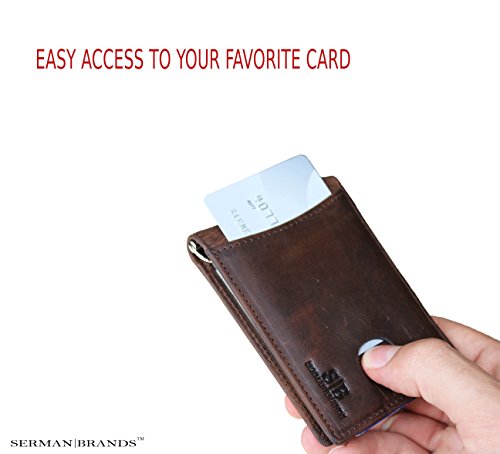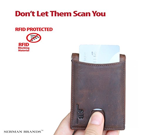 Binding : Apparel Product Description SERMAN BRANDS Genuine Leather Wallets RFID Blocking - Theft Proof Wallet- Protect Your Identity The Secret to Keeping Your Data Safe! Identity Theft is at All Time High! Unless properly shielded, your card-based data is readily available when any active reader is in range! The Best Way to Protect Your Smart Cards from unwanted capture of data from contact less cards issued by banks, governments and other institutions such as: ? Credit or Debit (for example: MC PayPass, VISA PayWave, AMEX expresspay, INTERAC Flash, etc.) ? Enhanced driver's license, Hunting and fishing license ? Access / security control, Employee / School ID ? Health insurance, Medical ID ? Gift, Membership, Library ? Transit / Park pass Protects against access by NFC-equipped Smartphones Some recent smartphones are equipped with NFC technology which can also read the data on your Cards easily SERMAN BRANDS is a team of free thinkers with varied disciplines from design, engineering, marketing and finance. Together, they share their diverse strengths and united passion of creation to bring to you NEW life-easing everyday must haves. "We love all things beautiful, functional and well crafted. Today there's a growing community of people who appreciate and hunt for this union of solid functionality, minimalist style combined with great craftsmanship made from honest materials. We believe that these are the core value of our creations and customers. 0 |