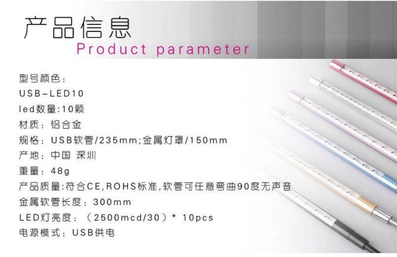 Brighten up your day with the USB LED lights! Just plug them into any USB ports like your laptop or powerbanks and you can have the light at any time! These lights have 10 white LED lights that provides you maximum illumination.The light stands are elastic and adjustable so you can adjust it for your use.