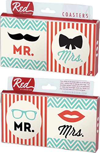 Mr. Mustache Mrs Lips 4 Piece Absorbent Ceramic Coaster Set