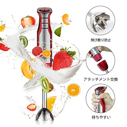 使い勝手のいい大きめの2重スピードモードボタンを採用して、グリップは握りやすい形状で女性でも扱いやすいハンドブレンダーです。