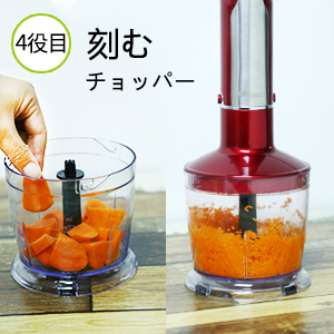 毎日のお料理に!ブレンダー、チョッパー、泡だて器を1本に集約して1台4役のハンドブレンダーです。