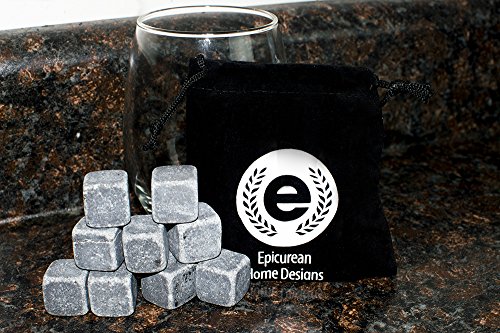 -. Brand : Epicurean Home Designs -. Color : Gray -. EAN : 0017874017454 -. Feature : EASY TO USE - Includes 9 whiskey cooling rocks and a storage pouch / PERFECT FOR A GREAT GIFT - Beautifully boxed and great as a gift! / 100% NATURAL SOAPSTONES AND WHISKY STONES - Made from 100% soapstone and will not react to water, alcohol, or other beverages (FDA Generally Recognized as Safe) / DISHWASHER SAFE AND REUSEABLE - Easy to use, non-porous, odorless - Store in your freezer, wash and use / KEEPS NATURAL TASTE - Perfect as a conversation piece among other whiskey lovers! -. Label : Epicurean Home Designs -. Manufacturer : Epicurean Home Designs -. ProductGroup : Kitchen -. ProductTypeName : KITCHEN -. Publisher : Epicurean Home Designs -. Studio : Epicurean Home Designs -. Title : Whiskey Chilling Stones. Sipping Rocks Made From Pure Soapstones - Set of 9 Ice Cubes -. UPC : 017874017454