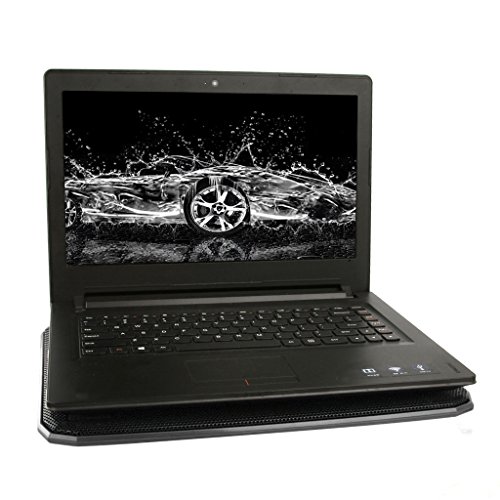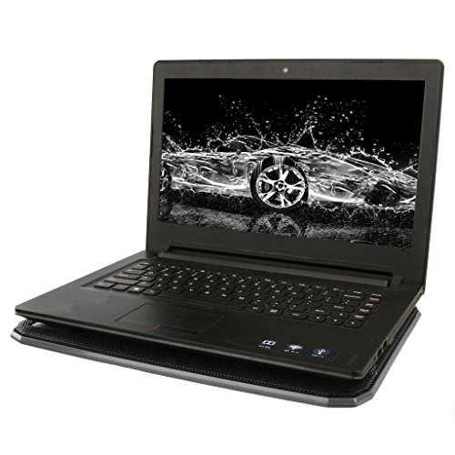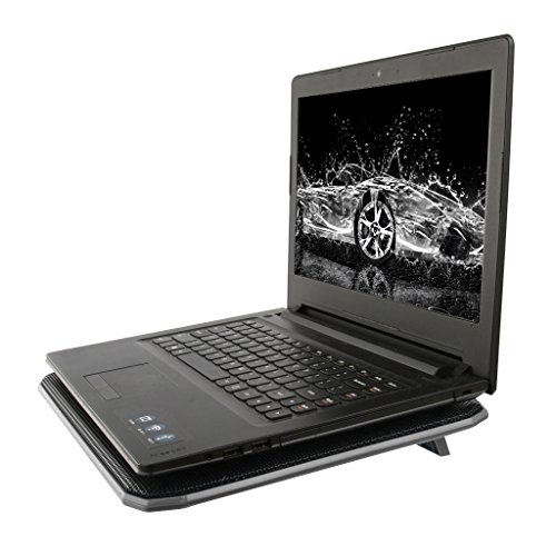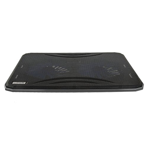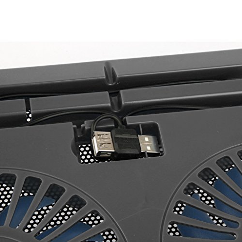 -. Feature : Suitable for laptop up to 17 inch / Brand new laptop cooling pad, ergonomic dual-angle regulation / Ultra slim design with two extra large, high performance, quiet fans / Powered via USB port directly, built-in USB cord organizers, no extra power adapter necessary / Unique back cable management features and by an also an interface design