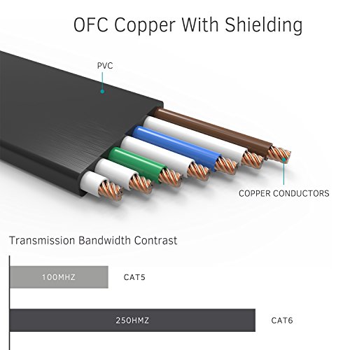 ✔Flexible and durable Cat6 cable with high bandwidth of up to 250 MHz guarantees high-speed data transfer for server applications, cloud storage, video chatting, online high definition video streaming, and online gaming
