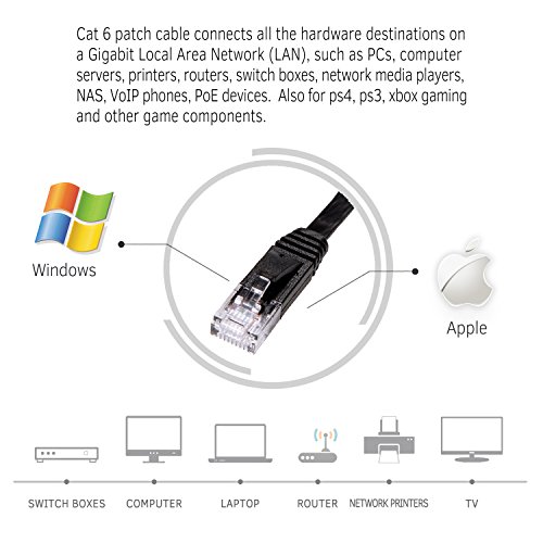 ✔Cat6 patch cable connects all the hardware destinations on a Gigabit Local Area Network (LAN), such as PCs, computer servers, printers, routers, switch boxes, network media players, NAS, VoIP phones, PoE devices, and more; Supports: Gigabit 1000 BASE-T; 100 BASE-T; 10 BASE-T .Meets or exceeds Category 6 performance in compliance with the TIA/EIA 568-C.2 standard