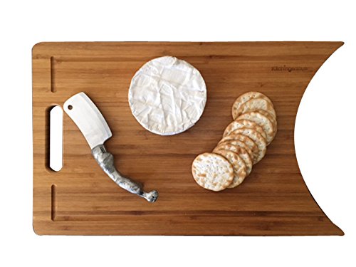 Crescent Cutting Chopping and Cheese Board By Kitchingenious - Made From Organic & Sustainably Harvested Tortoise Shell Bamboo - Original Crescent Design for Easy Placement of Chopped Food