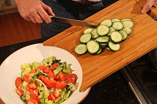 - The Crescent Cut Offers both Utility and Beauty, Large, 17"x11", yet Lightweight and Easy to Use. Allows for easy placement of chopped food into skillets, bowls, and onto plates. The open drip groove allows you to use the juice, and makes for easy cleaning. Cutout makes for easy handling and hanging on walls or hooks.