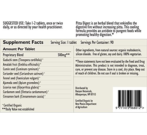 -. Title : Banyan Botanicals Pitta Digest - Certified Organic, 90 Tablets - Digestion Formula For Pitta
