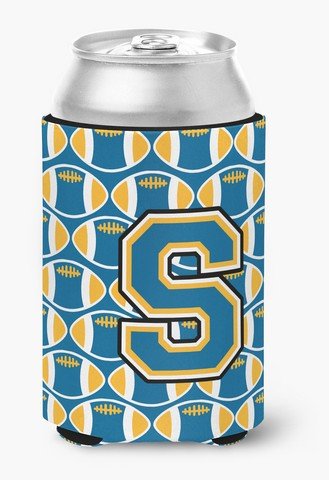 Caroline's Treasures CJ1077-SCC Letter S Football Blue and Gold Can or Bottle Hugger, Multicolor