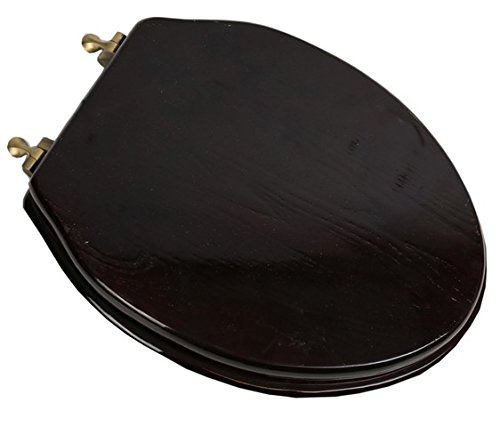 -. Title : Bath Décor 5F1E2-18AB Elongated Toilet Seat in Traditional Design with Antique Brass Metal Hinges, Dark Brown Stained Finish