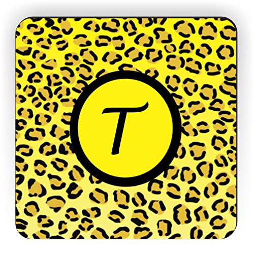 Rikki Knight Letter "T" Initial Yellow Leopard Print Monogrammed Design Square Fridge Magnet