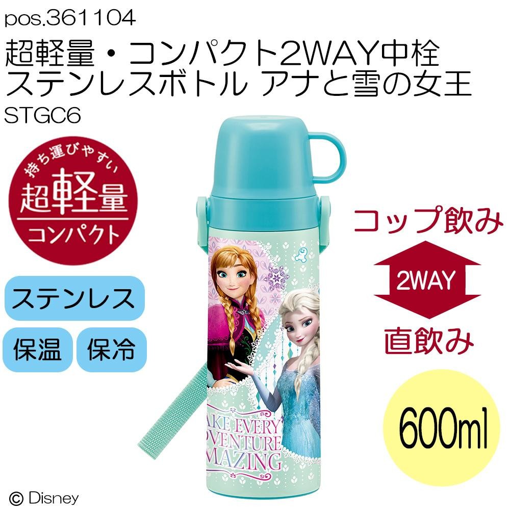 直接口を付けて飲む水筒としても、コップに入れて飲む水筒としても使える2WAYのステンレスボトルです。氷を入れやすい広口タイプで、ワンタッチ式のスライドバーで飲み方をお選びいただけます。 製造国:中国 素材・材質:内びん、口金:ステンレス鋼胴部:ステンレス鋼(アクリル樹脂塗装)コップ、中栓:ポリプロピレンパッキン:シリコン樹脂底板:エラストマー 商品サイズ:約直径76×高さ245mm 仕様:容量:600ml電子レンジ使用不可食洗機使用不可保温効力:46度以上(24時間)保冷効力:7度以下(6時間) 付属品:ショルダーベルト、名前プレート、取扱説明書 ※サプライヤー直送品 ご注文後2~3営業日後の出荷となります【商品名】pos.361104 超軽量・コンパクト2WAY中栓ステンレスボトル アナと雪の女王 STGC6