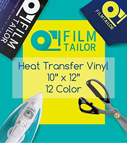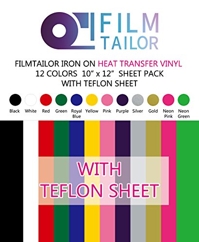 FilmTailor [HTV] 10" x 12" Heat transfer vinyl basic 12colors (with Teflon) pack sheet excellent for T-shirt, Hats and any fabric, Iron on for Silhouette Cameo, Cricut, Heat Press Machines