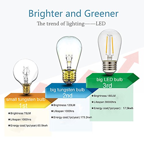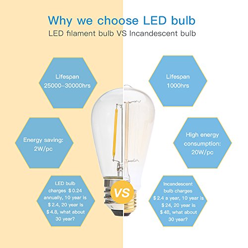 - 【ENERGY-SAVING & LONG LIFESPAN LED BULB】LED filament bulb,energy-saving and environmental protection,long service life is up to 25,000-30,000 hours which means it is seldom replaced and cost saving.