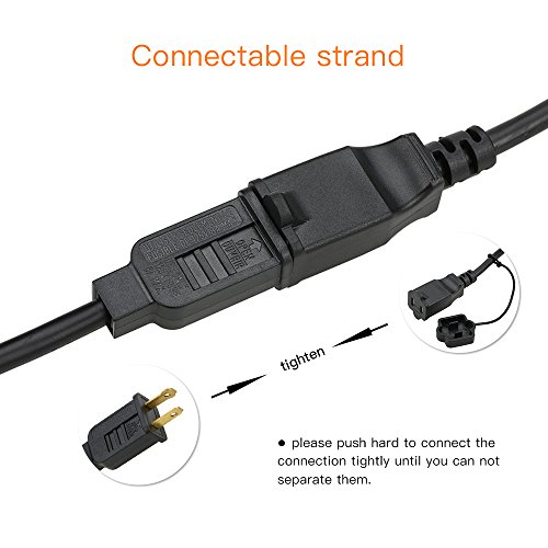- 【HEAVY DUTY BLACK WIRE WEATHERPROOF LIGHT STRING】Being made of brass double core and heat-resistant insulating durable rubber, total length of the light is 15.2 meters which can hang 15 LED bulbs and its working temperature is from -20℃-40℃ and IP65 water proof. Withstand in extreme temperatures, rainy, windy, or damp climates.