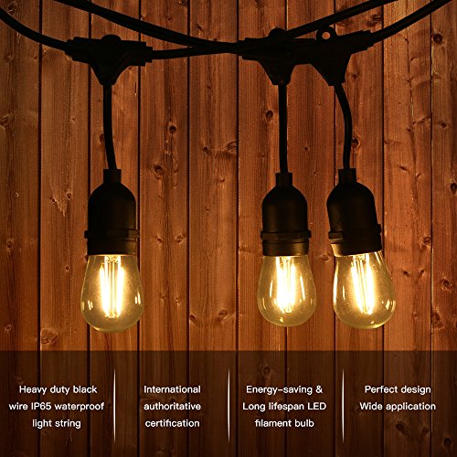 Tomshine LED Outdoor String Light, 49.9FT IP65 Waterproof 15PCS LED Edison Vintage Bulbs for Garden Patio Porch Party Decoration (UL Listed)