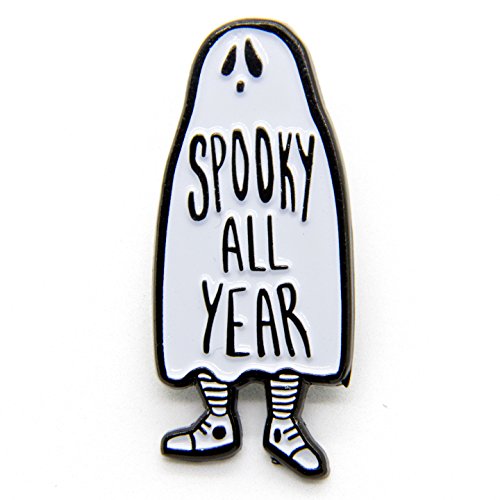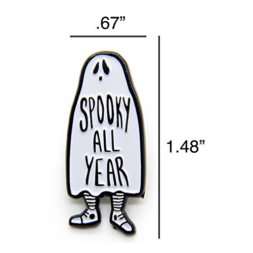 Binding : Apparel Product Description For some of us, Halloween never ends. This black and white enamel pin features a sheet ghost kid emblazoned with the quote, "Spooky All Year". It is a durable accessory made from metal and enamel. Measures 1.48" x .67". Two tie tack pins on the back ensure a secure closure. Pin it to you leather jacket, denim vest, lanyard, and more! Perfect for adding a hint of Halloween to any outfit. This pin is designed by Ectogasm in Southern California. It is art you can wear! Made from metal and enamel. Two tie tack pins on the back. 0