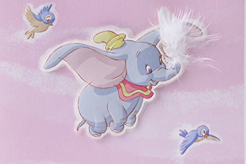 Congratulate new parents with this card, featuring Dumbo soaring through the air, bearing a feather and surrounded by little birds, against a pink background. The message on the front of the card reads, "Cootchy-cootchy-coo!" Open the card to reveal the inside message, "So tickled for you! Happy Baby Shower." The card measures 8.3 inches long by 5.8 inches wide made with high quality cardstock paper; an envelope is included. All Hallmark cards are made with paper from well-managed forests. Hallmark was founded in 1910 when 18-year-old J.C. Hall arrived in Kansas City, Missouri, with a couple of shoeboxes of postcards under his arm and the American dream in his heart. Today, more than a century later, Hallmark greeting cards are sold online and in nearly 40,000 retail stores across the globe and people continue to recognize the iconic Hallmark brand as "the very best."Feature