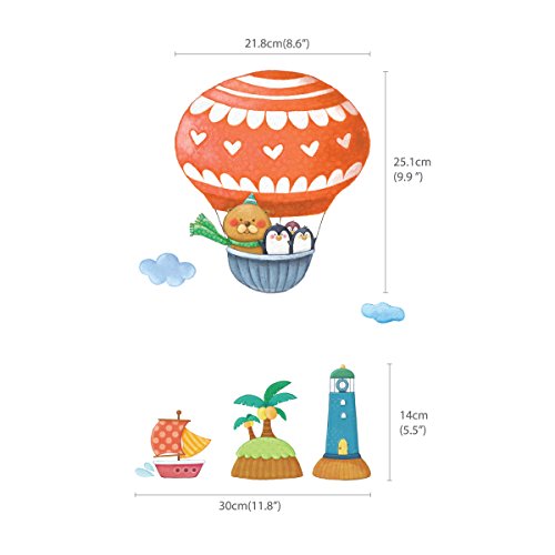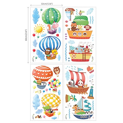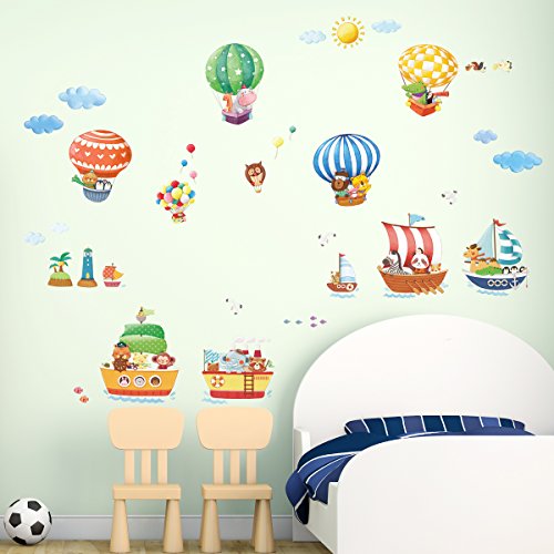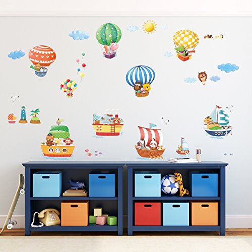 Decowall DA-1406B1506A Animal Hot Air Balloons and Ships Kids Wall Decals Wall Stickers Peel and Stick Removable Wall Stickers for Kids Nursery Bedroom Living Room