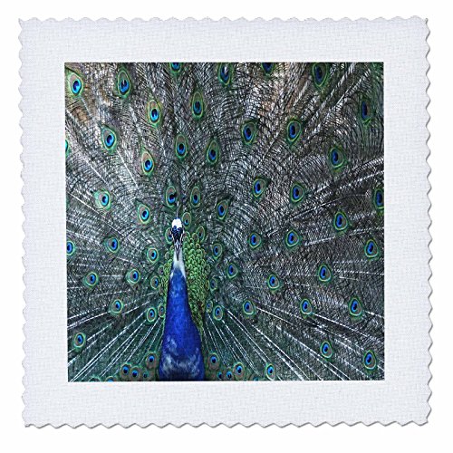 3dRose Image of Live Peacock with Full Plumage Quilt Square, 25 x 25"