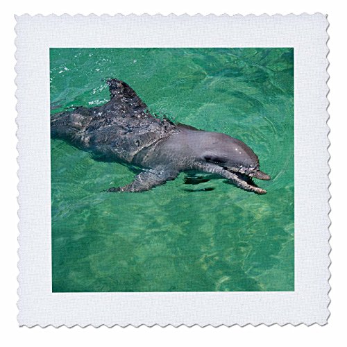 3dRose qs_209458_2 Honduras, Honduran Bay Islands. Anthony's Key, bottlenose dolphin.-Quilt Square, 6 by 6"