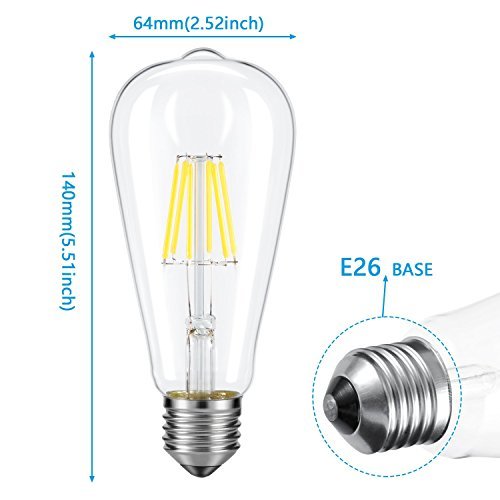 - Extremely Long Life- 22 years long lifespan (27000 hours, used 3 hours per day),17 times longer than incandescent bulb, effectively reduces frequency of changing light bulbs;Replace 60W Incandescent Bulb by 6W Filament LED Bulb. Save over 90% on Electricity Bill of Lighting.