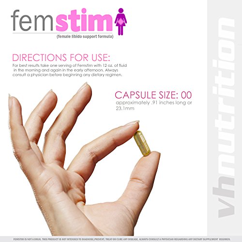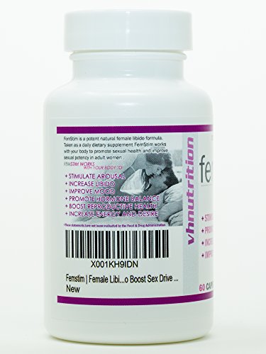 Studio : VH Nutrition Publisher : VH Nutrition Binding : Health and Beauty Product Description Femstim is a 100% natural, potent libido enhancing formula designed specifically for women. Femstim is designed to help increase sexual desire and heighten sensitivity in women. It can be used as part of a daily supplement regiment, or taken a few hours before the need arises. When used daily, Excite has the added benefit of boosting energy levels, helping regulate and increase natural estrogen levels, and can work as a mood booster. Each ingredient in our proprietary blend has shown real world results for women. Femstim is produced in California, USA without added fillers, stabilizers, emulsifiers, or flow agents. At VH Nutrition we stand behind Femstim with a 30 day 100% satisfaction guarantee. Please read the entire label before use. If you're struggling with low libido, give Femstim a try today! 0
