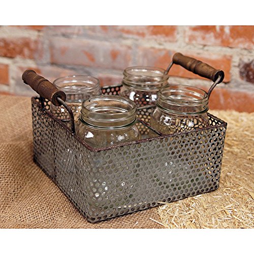 Four Piece Mason Jar Set with Metal Caddy Basket