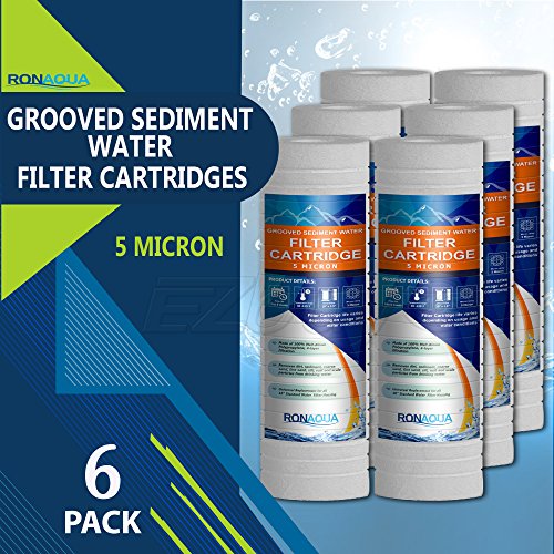 Grooved Sediment Water Filter Cartridge by Ronaqua 10"x 2.5", Four Layers of Filtration, Removes Sand, Dirt, Silt, Rust, made from Polypropylene (6 Pack, 5 Micron)