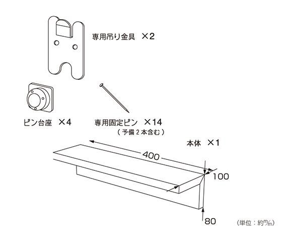 サイズW400×H80×D100mm