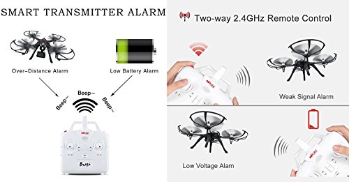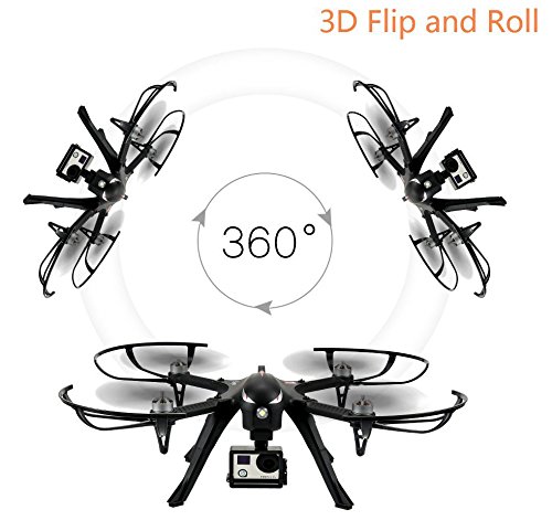 * HIGH-SPEED BRUSHLESS MOTOR * : Equipped with MT1806 1800KV BRUSHLESS MOTOR, Advanced motor technology facilitates low friction between motor parts, thus reducing heat production. Therefore, extremely durable and energy-efficient allowing longer battery life of 50% or more compared to conventional motors. With huge power can be used as racing drone. * 2.4GHZ TWO-WAY COMMUNICATION * : WORRY-FREE FLIGHT EXPERIENCE, Novel two-way 2.4GHZ transmitter enhances drone response and control. High operating range of 300-500 meters for an adrenaline-rushing experience. Built-in automatic lock protection and high temperature lock protection which ends up the pilot's worry about motor and ESC burn out due to dead lock. * HIGH CAPACITY BATTERY (included) * : With High capacity 1800 mAh of power you can expect flights of 15-18 minutes on a single charge. The flight time depends on a number of external factors. * ACTION CAMERA SLOT * : SUPPORT TO MOUNT GOPRO & SPORTS CAMERAS: By attaching your own action cameras to capture HD images/video and record your family activities for lasting cozy memories.Combined with MJX stable cloud service, it can output smooth images with ease and provides a better photography experience for players. Camera is not included. Smart Remote Control Alarm Function: The transmitter buzzer receives the voltage status of the drone will send out beep sound once it's in low voltage and also will make an audible sound once the signal is weak, your drone is always under control, it will remind you to take action immediately to avoid unnecessary loss.Feature