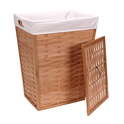 Household Essentials Bamboo Lidded Hamper, Basket Weave