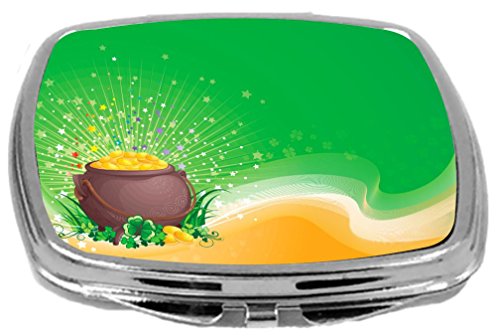 Rikki Knight Compact Mirror, Gold Coins In Pot Irish Shamrock