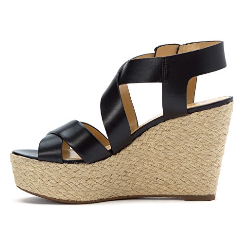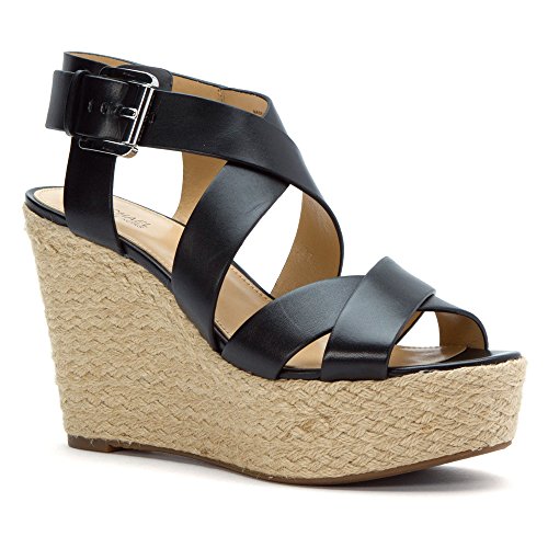 A jute-wrapped platform and crisscrossing leather upper straps give the MICHAEL Michael Kors Celia Mid Wedge sandal eye-catching, trendy style, while a cushioned footbed ensures lasting comfort.Feature