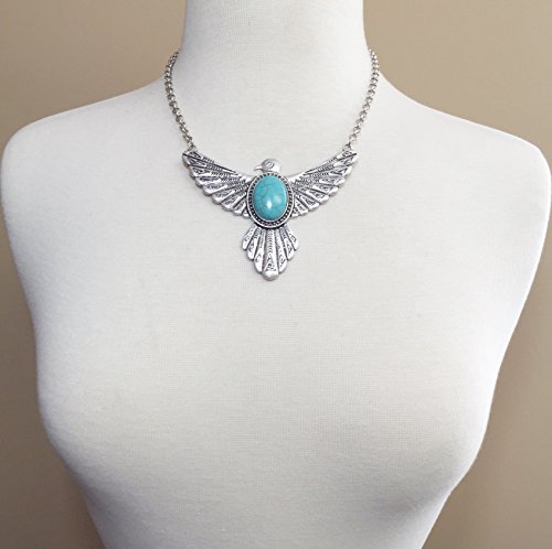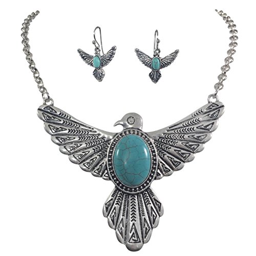 Tribal Eagle Simulated Turquoise Silver Tone Western Southwestern Look Necklace Earring Set
