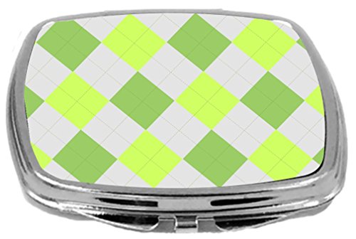 Rikki Knight Compact Mirror, Green On Grey Argyle