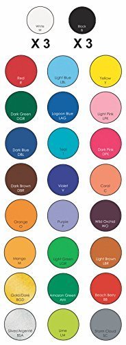- The colors included in the Paradise Makeup 30 Palette are Black (3), White (3), Red, Yellow, Dark Blue, Dark Green, Orange, Dark Brown, Teal, Light Green, Dark Pink, and Purple, Lagoon Blue, Beach Berry, Mango, Amazon Green, Lime, Storm Cloud, Wild Orchid, Coral, Light Pink, Light Brown, Light Blue, Violet, Gold and Silver