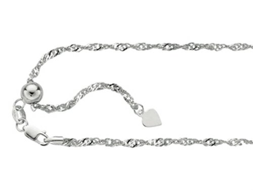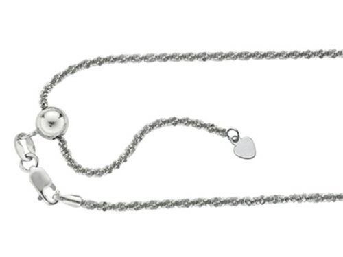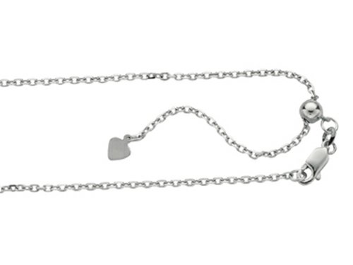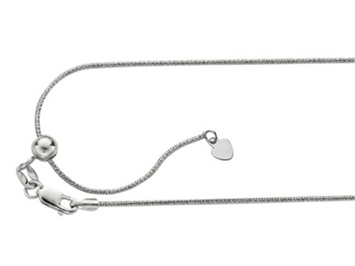 The dazzling Rhodium Plated 22 Inch bright-cut Adjustable Snake Chain Necklace with Lobster Clasp and Small Heart Charm, crafted in 925 Sterling Silver . This design measures 0.80 mm wide.