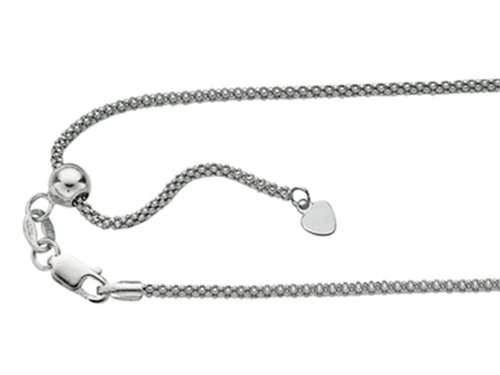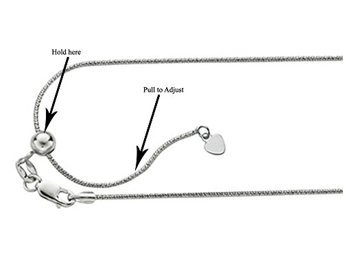 Rhodium Plated 22 Inch bright-cut Adjustable Snake Chain Necklace with Lobster Clasp and Small Heart Charm Sterling Silver