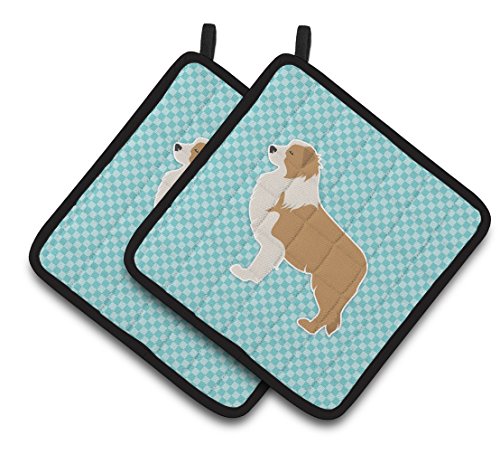 Caroline's Treasures Red Border Collie Checkerboard Blue Pair of Pot Holders BB3722PTHD, 7.5HX7.5W, Multicolor