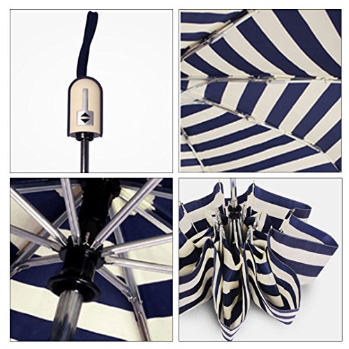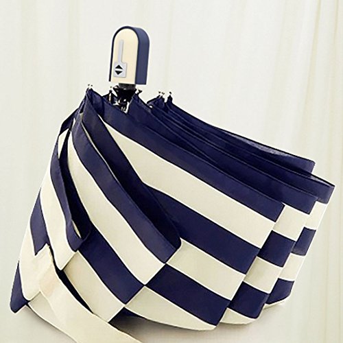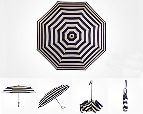 -. Title : YAOSEN Navy Striped Anti-UV Umbrella Triple Folding Automatic Umbrella