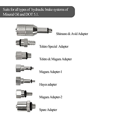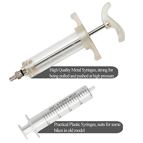 This brake bleedkits provide for everything you needed for all types of hydraulic brake systems of Mineral Oil and DOT 5.1. Every parts are in high quality, especially for syringe with metal fittings allows to pull and push at high pressure to extract all the air bubbles out of the hydraulic system.