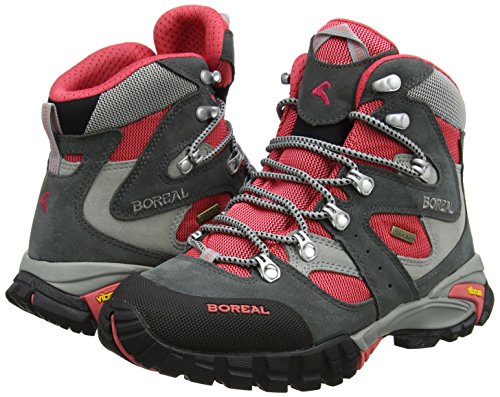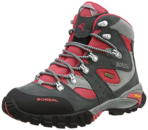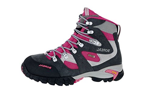 Studio : Boreal Publisher : Boreal Binding : Apparel Product Description Womens Boreal Climbing Shoes: Great for any climber! Whether your walks are short trips into the fells or longer backpacking adventures, the Boreal Siana is the ideal choice. Light, comfortable and durable and with a Dry-Line waterproof lining to keep you dry. It features Siana features a women's specific last shape, ideally suited to the contours of a lower volume foot. The upper is constructed from high quality split leather and Teramida SL with a rubber toe cap for an excellent combination of durability and light weight. Our HFS (Heel Fit System) keeps your heel secure, while the CFS (a softer area at the rear of the ankle cuff and top of the tongue which allows unrestricted fore/aft leg movement) gives superb freedom of movement and comfort. Our Boreal Dry-Line waterproof and breathable lining keeps the foot dry and comfortable, and the PXF midsole provides ample support on rougher ground or when carrying a pack. The Vibram Nuasi outsole is grippy and durable, and features a shock-absorbing PU layer for underfoot comfort. Siana is ideally suited to 3 season fell walking, trekking and backpacking. Premium quality waterproofed 1.8mm split leather and Teramida SL. HFS padded heel system. CFS flex system for maximum comfort. Rubber toe cap for durability. Boreal Dry-Line for absolute waterproofness and stay cool breathability. Boreal PXF. Round Toe. Lace. Vibram Nuasi outsole with shock absorbing PU. Trekking, backpacking, fell walking. 2-3 season use. Travel. 44875 0